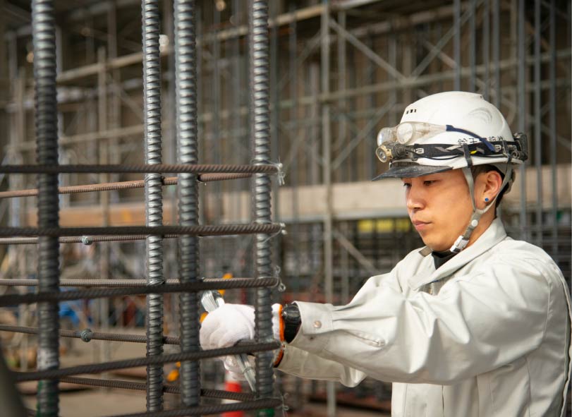 もともと父が働いていたこともあり、高校卒業後、鈴王へ就職。親子2代でお世話になっています。しかし、入社にあたっては、全く建築の知識がない状態。最初は慣れない環境や作業に心配もありましたが、1・2年である程度の知識を得ました。現在は高層マンションの柱・梁の製作を担当しています。