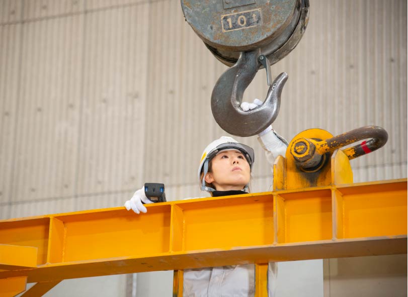 実は入社してからクレーン作業の免許を取りました。最初は3日間の講習で取得できる「床上操作式クレーン技能」からはじまり、更に荷重制限なくほとんどのクレーンを操作できる「クレーン運転士」の国家資格も取得しました。資格試験合格のための勉強は、まあまあハードでしたが、無事に合格出来ました。免許を取得したことで、個人の仕事幅も広がったと思いますし、会社にも貢献できているのが嬉しいですね。今では10tを超える製品や製作機械を、天井クレーンで移動する仕事もこなしています。