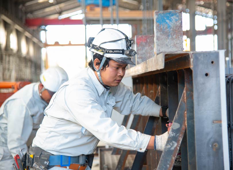 仕事は、毎日緊張感がありますが、逆に会社の雰囲気はやさしく、明るい感じです。今はミャンマーから多くの技能実習生が来てくれています。彼らがとても素直に、いろんな仕事に取り組んでくれているのも会社全体にいい影響を与えていると思います。