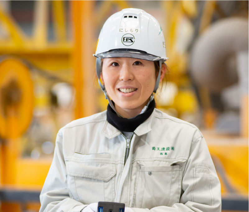 日常の仕事は、作業がうまく進むように、前段取りと工程管理をすることが主です。こうした事務的な作業も多いので、体力に不安のある女性にも働きやすい環境だと思います。また工程管理は日々の問題点も出てきます。不具合が起こらないようにチームみんなで改善していけるのもこの会社の面白いところ。私自身もいま、チームリーダーを任されているので、メンバーの働きやすい環境づくりに努力していきたいです。